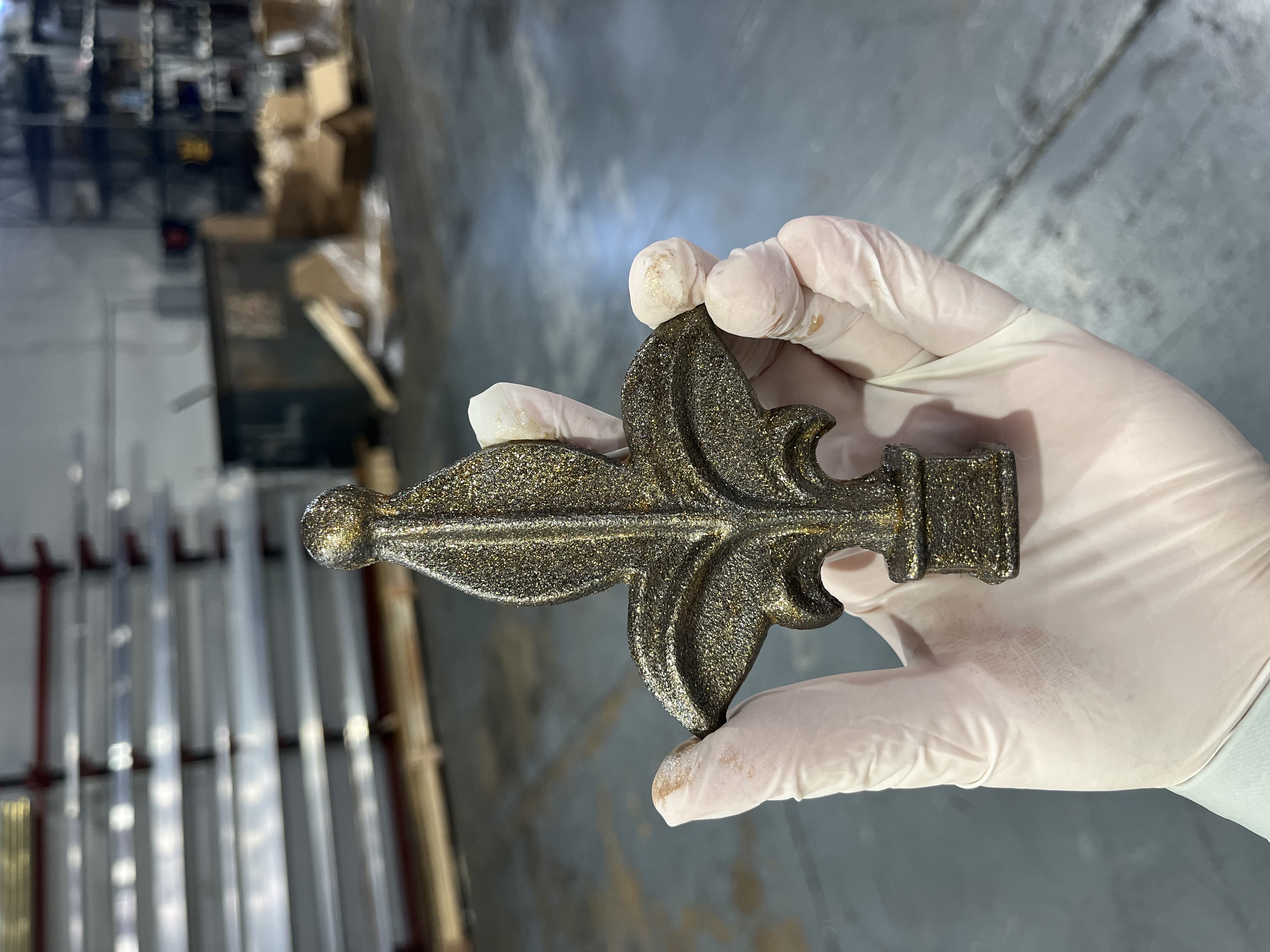 Right: Example of one coat of the gold leaf paint applied to a steel top.