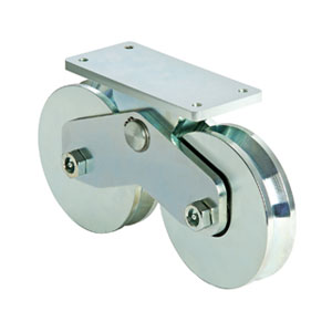 V-groove track options are available that allow for the track to be cemented in place or bolted in place. Connection pins are offered to help align multiple sections of track. These heavy duty wheels are available in 4" and 6" and have 2 bearings. The wheel load varies from 2654 lbs. to 4230 lbs.