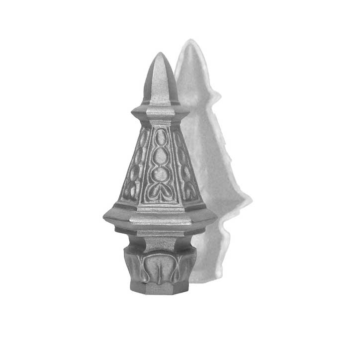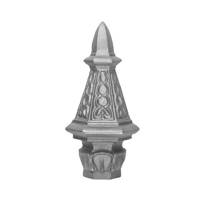 This ornamental, roman design, fence post comes in two pieces that would be welded together. The top of this post is available in a 1 piece or 2 piece option.