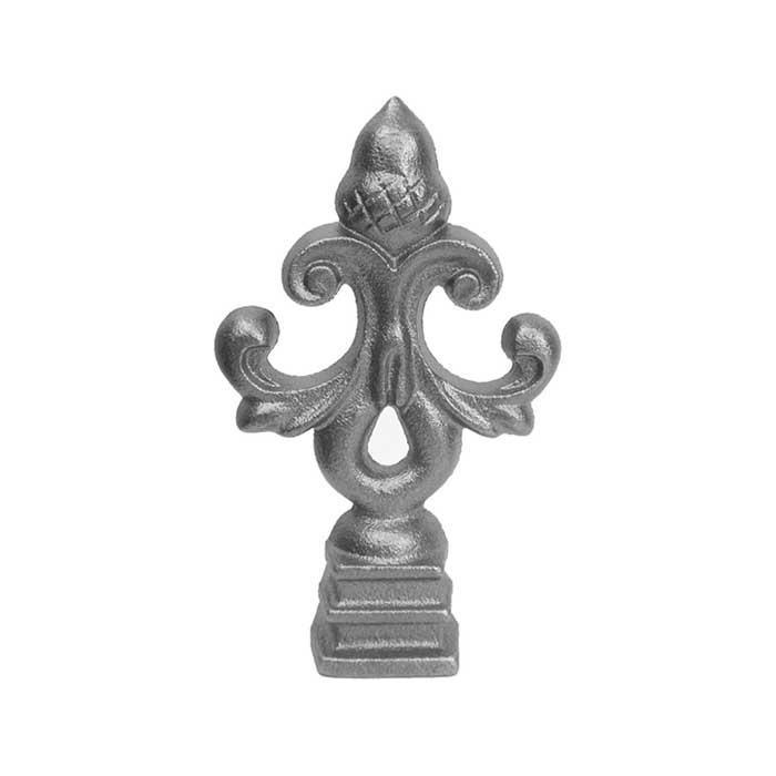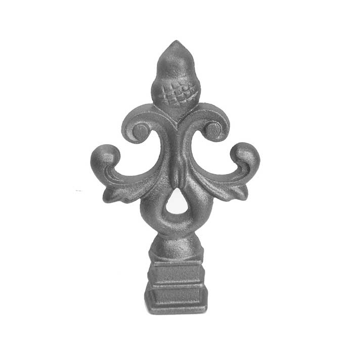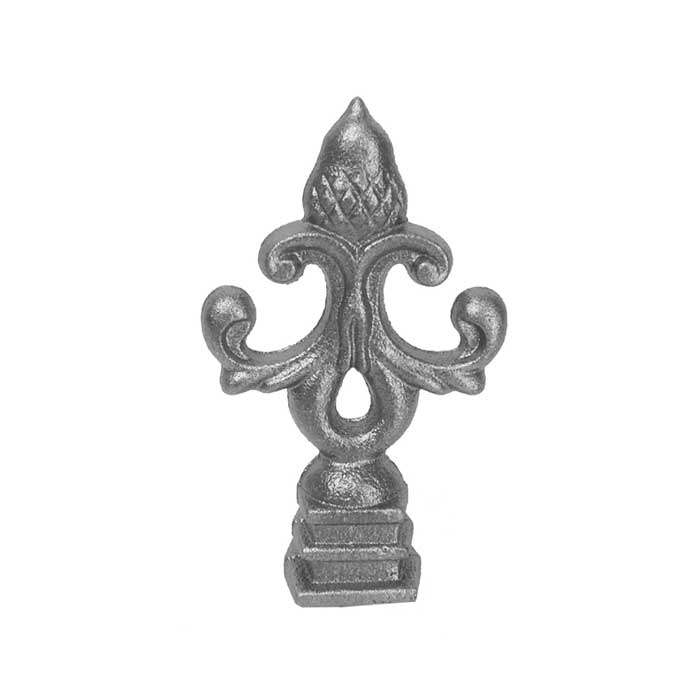 This cast iron finial is 4" wide and 6" high. Fits over 3/4" square.